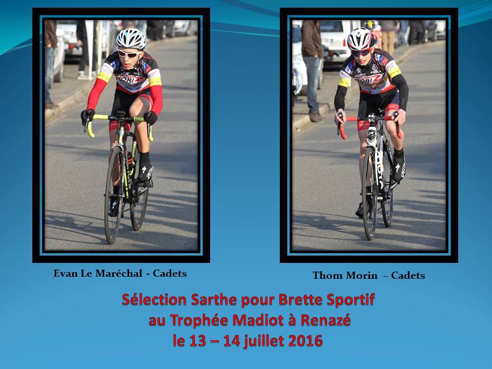 Evan Le Maréchal et Tom Morin sélectionnés en équipe Sarthe pour le trophée Madiot le 13 et 14 juillet 2016.